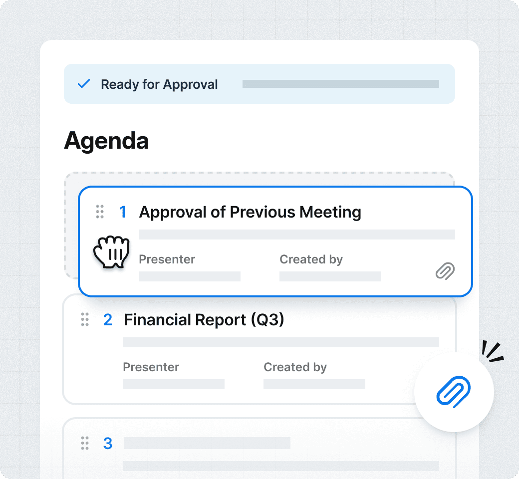 - Drag and drop agenda items to organise your meeting in seconds