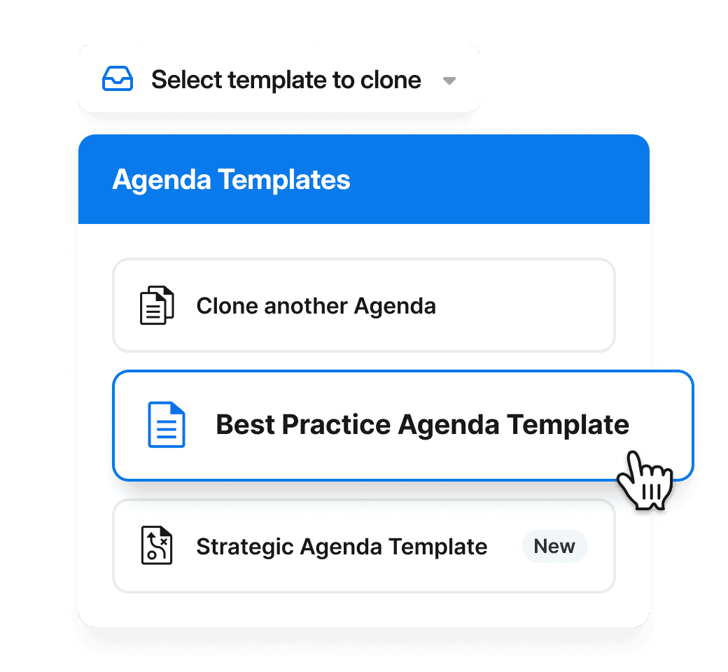 - Build an agenda from scratch or reuse your own templates for different meeting types