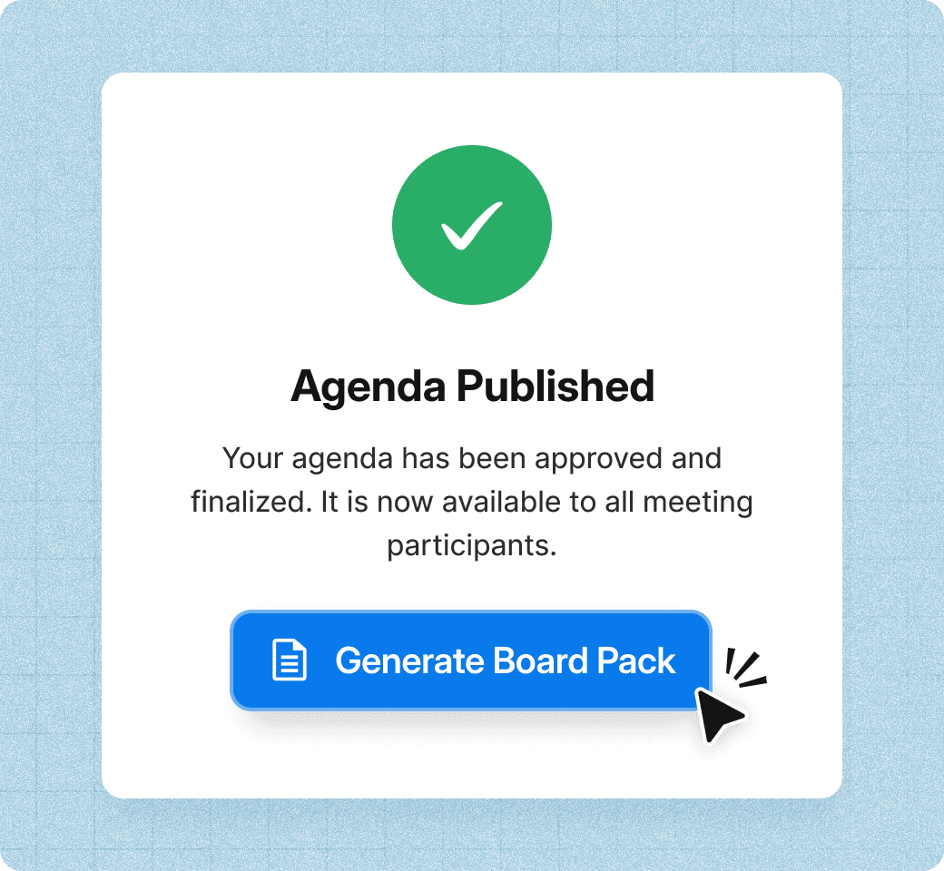 Automatically compile all agenda items, reports, and documents into one professional, ready-to-share pack.